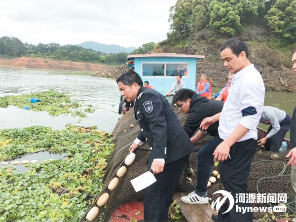 違法網箱網袋,拆!為切實保護萬綠湖生態環境,近日,東源縣錫場鎮開展違法網箱網袋庫灣攔網清拆專項行動。