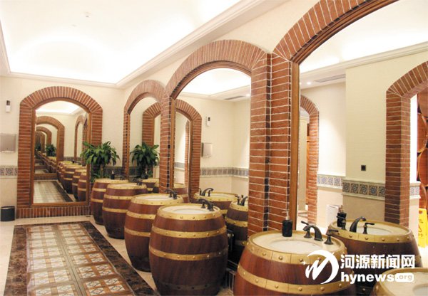 在巴伐利亞莊園的福朋喜來登度假酒店廁所內,記者留意到,該酒店的廁所環境與眾不同,整體建筑以啤酒為主題,地鋪瓷磚,室內裝飾有啤酒主題的墻上飾品、洗手臺等。據景區負責人介紹,巴伐利亞莊園于2015年起便對現有廁所配套設施進行升級,并新建旅居酒店停車場、黑森林樂園、新大門、滴滴湖休閑公園等共8座廁所,而這些廁所也是融入景區的元素來建設的。
