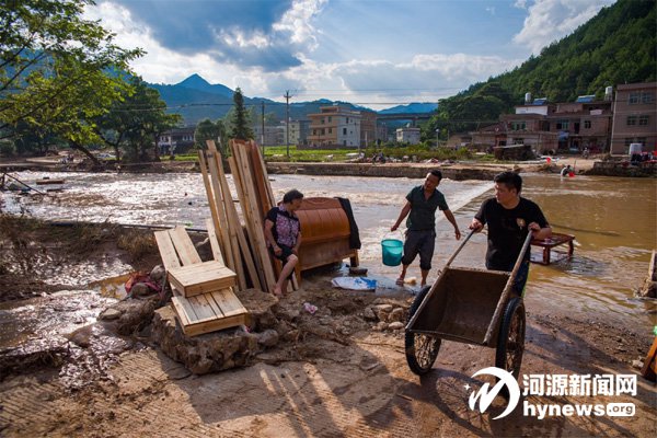 “真的非常感謝政府和志愿者們,要不是他們,我們現在真的不知道怎么辦。”用斗車一車一車往外拉著家中淤泥的謝文書一面領著記者往他家走去,一面告訴記者,對于10日當天突如其來的洪水,全家人仍然心有余悸。