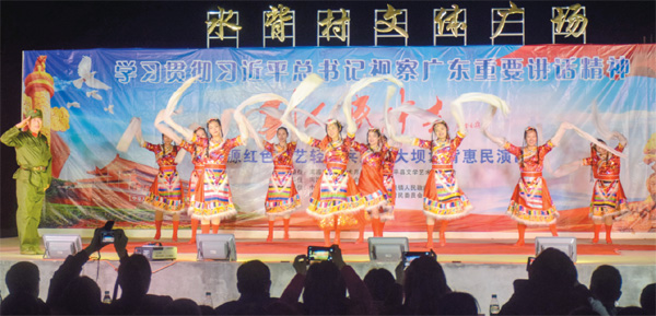 前晚,“到人民中去”河源紅色文藝輕騎兵惠民演出在和平縣大壩鎮水背村文化廣場舉行,共有500余人觀看了精彩的演出。本次演出活動由市文聯、和平縣文聯主辦,市曲藝家協會承辦。