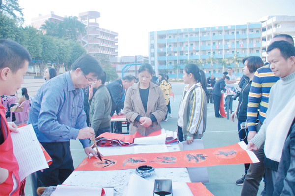 24日,市文聯(lián)組織市公安文聯(lián)、市曲藝家協(xié)會(huì)、市書(shū)法家協(xié)會(huì)、市攝影家協(xié)會(huì)的志愿者到源城區(qū)光明學(xué)校開(kāi)展了文藝惠民演出、“寫(xiě)春聯(lián)送祝福”義寫(xiě)春聯(lián)以及攝影志愿服務(wù)活動(dòng)。據(jù)了解,本次“我們的中國(guó)夢(mèng)·文化進(jìn)萬(wàn)家”活動(dòng)由市委宣傳部、市文聯(lián)主辦,目的在于將黨的政策和新春祝福送到千家萬(wàn)戶(hù),同時(shí)提升河源城市文化氣息與品位,推動(dòng)創(chuàng)建全國(guó)文明城市和群眾性文化活動(dòng)深入開(kāi)展,進(jìn)一步滿(mǎn)足我市民眾對(duì)文化生活日益增長(zhǎng)的需求。