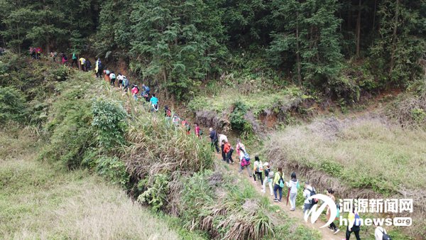 17日,2019南粵古驛道和平縣合水彰洞古村落徒步賞花活動舉行,吸引了1000多名徒步愛好者前來參與。