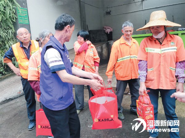 在清明節即將到來之際,河源好人互助聯合會的志愿者聯合愛心商家全紅商行、名廚世家,一起動手做艾粄,并親自送給市區東江灣、文明路、市二小路段的70多位環衛工人,讓他們感受到來自社會的關愛。據悉,這已經是河源好人互助聯合會的志愿者、愛心商家第4年為環衛工人送艾粄。