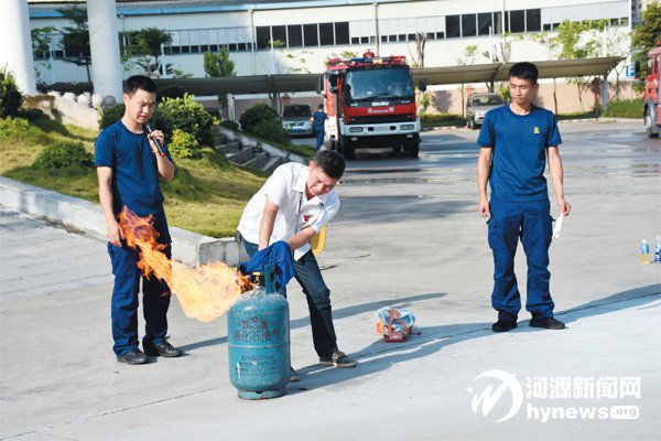 演練結束后,東源消防中隊組織開展了消防培訓,為參訓員工講解了如何正確報火警、常見消防設施器材的分類和作用等知識,并指導參訓員工親身體驗滅火器的操作使用方法,掌握基本的滅火技能。