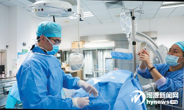 記者在市人民醫(yī)院見到廖成標(biāo)時(shí),他剛剛做完一臺(tái)心臟支架手術(shù),而另一位急需手術(shù)的病人已經(jīng)被推到手術(shù)室外了。2008年內(nèi)科學(xué)心血管病專業(yè)碩士研究生畢業(yè)的廖成標(biāo)來(lái)到河源,開始了在市人民醫(yī)院的從醫(yī)生涯。“心血管疾病是50歲以上中老年人的常見病,同時(shí)也具有高患病率、高致殘率和高死亡率等特點(diǎn),像心肌梗死這種病一旦急性發(fā)作,最佳治療時(shí)間窗口只有短短的12個(gè)小時(shí)。”廖成標(biāo)說(shuō),心血管疾病盡早治療效果是最好的,但當(dāng)時(shí)的河源,受限于各方面因素,大型的手術(shù)很難開展,大部分患者只能前往廣州、深圳等大城市進(jìn)行救治,這往往耽誤了最佳的治療時(shí)機(jī)。因此剛來(lái)河源的幾年時(shí)間里,廖成標(biāo)一直希望能夠通過(guò)自己和團(tuán)隊(duì)的努力,將市人民醫(yī)院心血管疾病的救治水平盡快提升,省卻患者去往廣州、深圳的奔波,保障河源居民的生命安全。