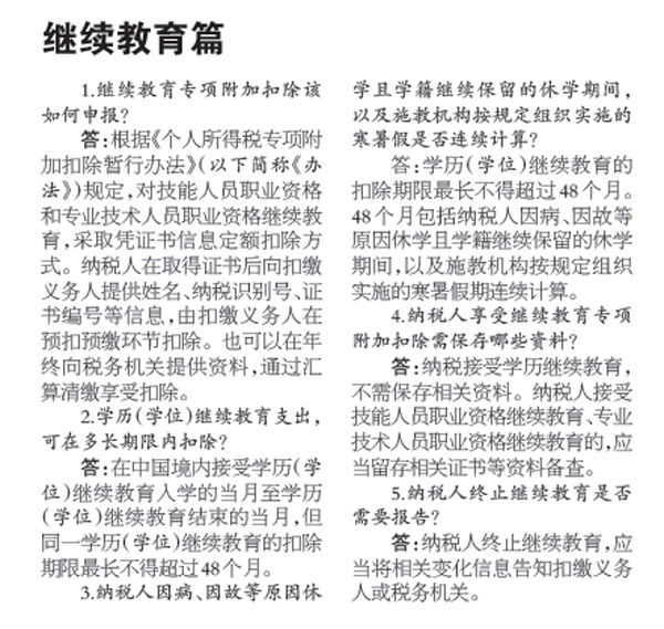 重磅干貨!個稅6 項專項附加扣除 納稅人常見疑問回答