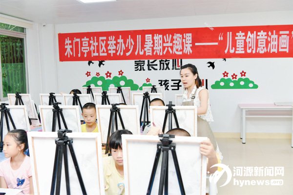 新江街道朱門亭社區開設“五點學堂”,孩子們在上“兒童創意油畫”興趣課。(資料圖片)