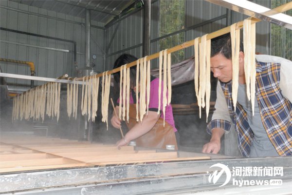 四都鎮新龍村貧困戶羅海蘭家自主創業的腐竹加工作坊生產場景。