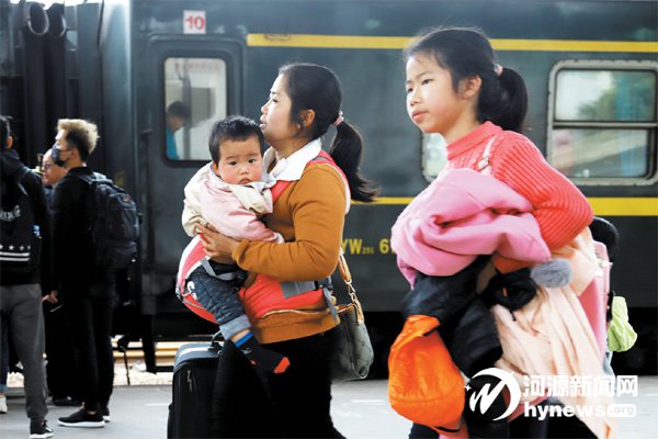前日,記者趕往河源火車站,用一個個鏡頭真實地記錄下旅客歸途中的“表情包”。