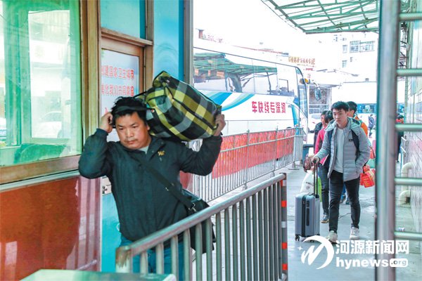 一元復(fù)始,萬象更新。春節(jié)長(zhǎng)假 已經(jīng)結(jié)束,帶著親人的牽掛與祝福,我 市外來務(wù)工人員再次拖著行李箱,返 崗上班繼續(xù)追夢(mèng),開始又一年忙碌而 充實(shí)的工作生活。11 日,記者在市汽 車站、河源火車站等地跟隨返崗人流, 走近返崗職工,聆聽他們路途上的故 事以及他們的期盼。