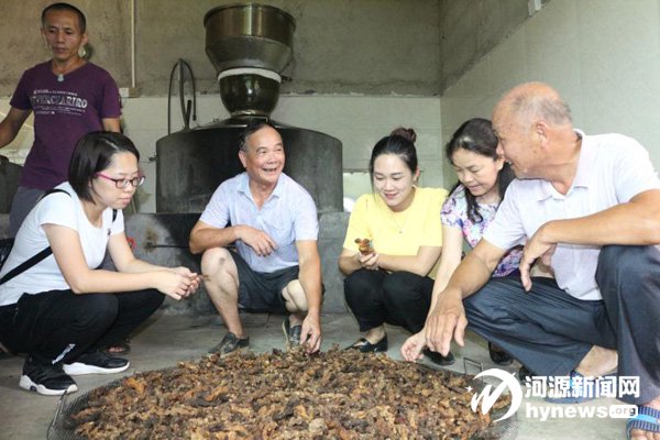 劉少娟(右三)在源南鎮雙下村一土法釀酒廠調研。