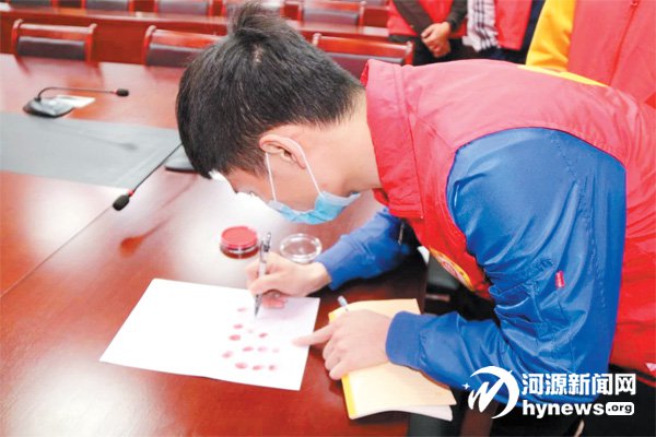 東源縣紀(jì)委監(jiān)委干部在到基層一線開展疫情防控“請(qǐng)戰(zhàn)書”上簽名。