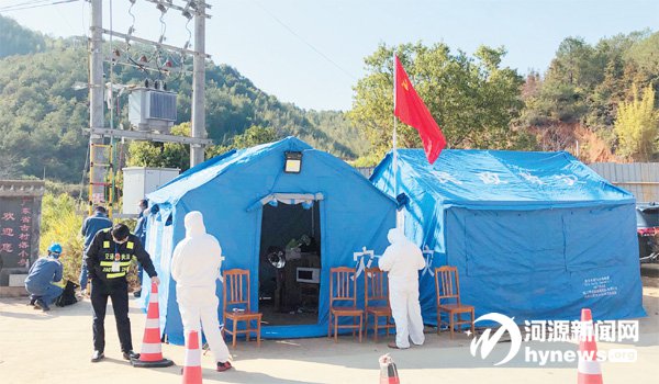 龍川縣細坳鎮(zhèn)新型冠狀病毒檢測點臨時黨支部成立后,黨員將黨旗插在檢測點現(xiàn)場。
