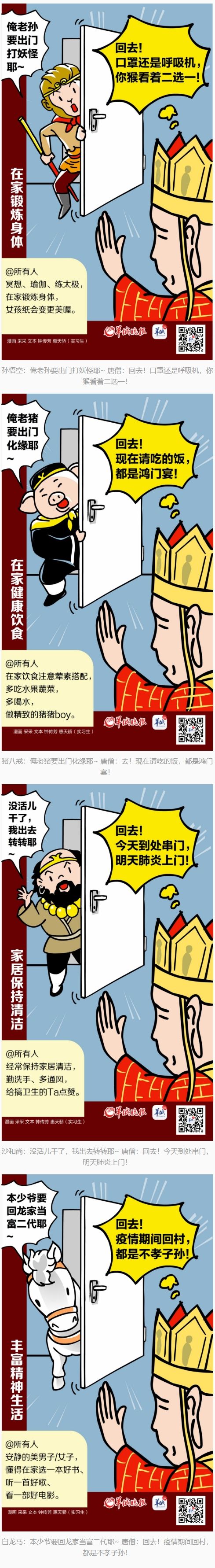 唐僧:回去,都給我回去,宅家,繼續宅! 文本 | 鐘傳芳 惠天驕(實習生) 漫畫 | 蔡紅 責編 | 江文華