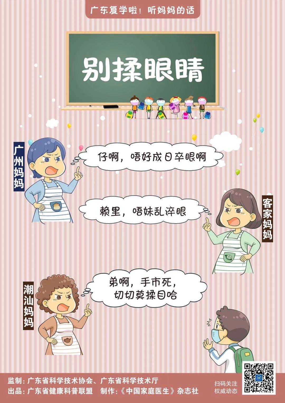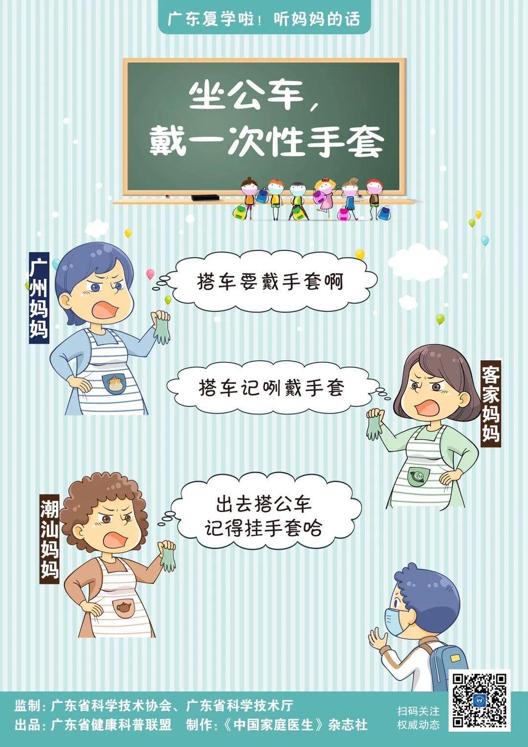 由廣東省科學技術協會、廣東省科學技術廳監制,廣東省健康科普聯盟出品,聯盟成員單位《中國家庭醫生》雜志社制作的科學防控應急科普宣傳掛畫——復學篇,為你重現廣州媽媽、客家媽媽和潮汕媽媽的“操心碎碎念”,復學后孩子怎么做防護,幾句話講清楚。家長們想要有所安心,就學著3位媽媽,每天在孩子出門前,“嘮叨”一遍吧!