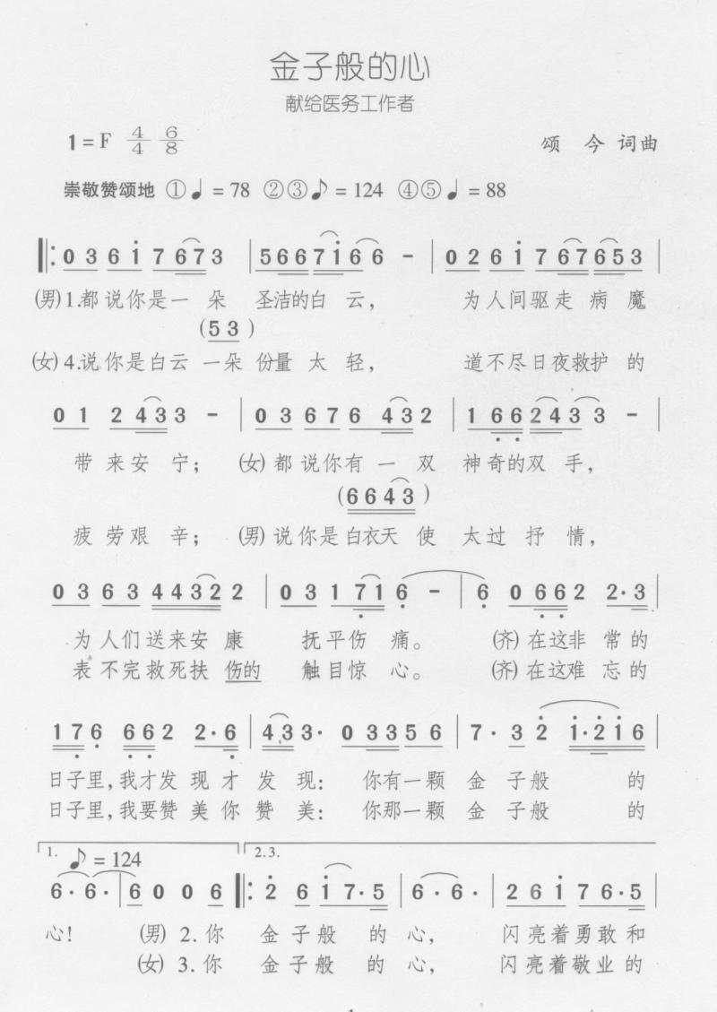 吳頌今在2003年抗擊非典的時候曾經創作了獻給抗擊疫情第一線白衣戰士們的《金子般的心》,這幾天,很多人又在傳唱這首歌。吳頌今說,看到新聞中白衣戰士們勇敢地沖上第一線抗擊疫情的消息,感覺和“非典”時的感動一般無二。本來還打算重新填詞,但仔細看了下,發現今天想對他們說的話,都在里面,索性原詞照發。