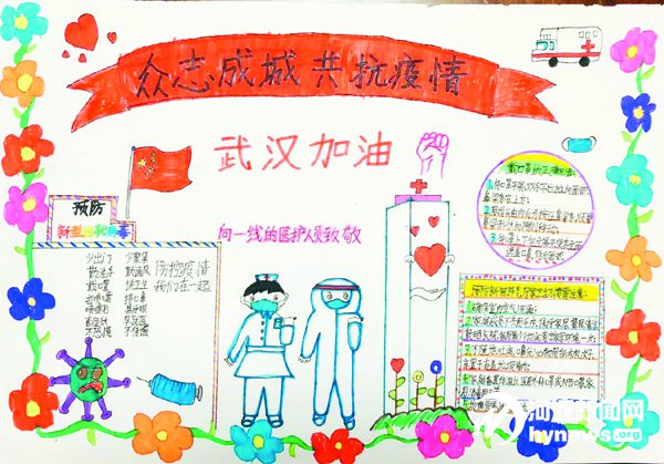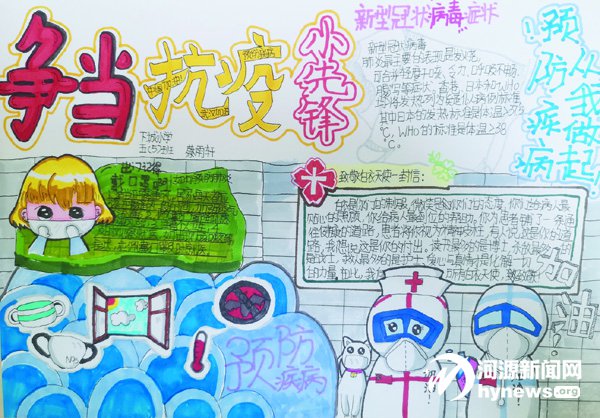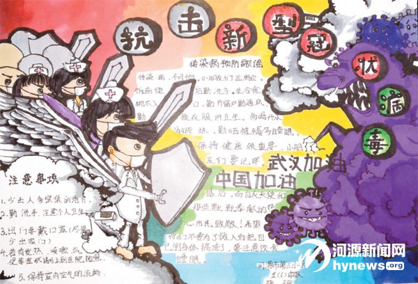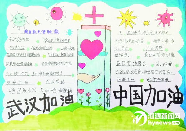 市二小、市三小、源城區下城小學、雅居樂小學等學校的少先隊員紛紛響應,積極行動,通過書法、繪畫、手抄報、視頻等方式宣傳防疫知識,向“逆行先鋒”致以崇高的敬意,用實際行動為打贏疫情防控阻擊戰貢獻自己的精神力量。