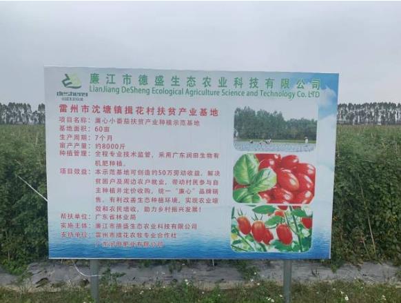 2019年,廉江市德盛生態(tài)農(nóng)業(yè)科技有限公司通過(guò)與雷州市那毛村、揖花村,廉江市埡坭塘村,遂溪縣上坡村建立扶貧產(chǎn)業(yè)示范基地600余畝,主打高端產(chǎn)品“廉心小公主”小番茄。