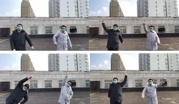 我們身穿厚厚的棉襖,活動著筋骨,笨笨的,就像是南極的企鵝和北極的熊。雖然動作不標準,但是有益身心,這是我們能想到最好的鍛煉方式了。支援武漢不是一兩天的事,要戰斗就必須要有強健的身體。