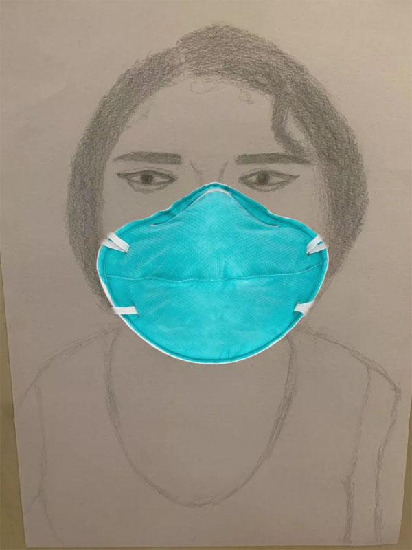 我的“村長”(科室組長)依舊在前線“戰疫”,我很想為她做點什么,但平時我不善花哨的言語,于是在家里畫了一幅畫送給她。當時她們在前面脫下防護服,臉上那一道道勒印的照片讓我印象特別深刻,于是臨摹了一張,還把村長那撮俏皮的卷發也臨摹了上去。畫完以后,突然想著現在依舊嚴峻的抗疫形勢,就P了一個N95口罩上去。忍者神龜,穿梭在城市里行俠仗義的勇士,對抗城市里的“病魔”,聚焦了兄弟情、友誼以及責任,像極了“村長”他們在前線奮斗的人!