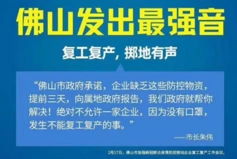 佛山市長公開承諾:絕不允許出現一家企業因為沒有口罩不能復工復產的事。