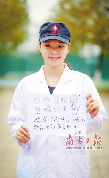 她說,小時候經歷非典、汶川地震時就想,當自己長大了,肯定也會去支援。除夕夜,她帶著父母和男友的牽掛毅然出征。