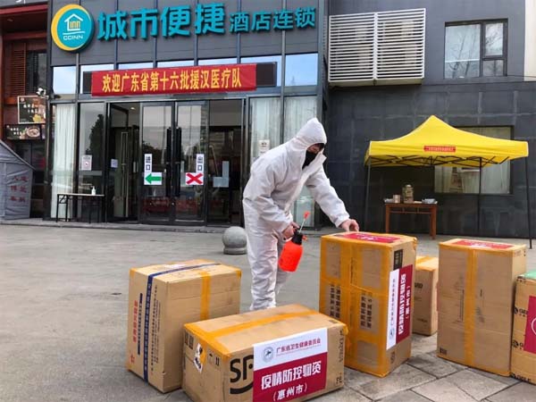 2月15日,城市便捷酒店的店長王小華連夜開車,從家鄉(xiāng)趕往疫情嚴(yán)重的武漢。她得知酒店被征用為醫(yī)護(hù)人員安置地,急忙趕回為醫(yī)護(hù)人員提供生活服務(wù)。武漢那時(shí)的天氣很冷,她擔(dān)心來自廣東醫(yī)護(hù)人員怕冷,就在他們?nèi)胱∏鞍芽照{(diào)溫度調(diào)好;擔(dān)心洗熱水供給不夠,她就去檢查熱水機(jī)組;擔(dān)心他們吃不慣湖北菜,她還特意請(qǐng)來了一位粵菜師傅。