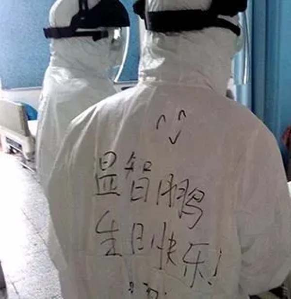 當(dāng)天的壽星之一,廣東韶關(guān)市中醫(yī)院呼吸內(nèi)科的主治醫(yī)師溫智鵬,穿著背后寫有“溫智鵬生日快樂”字樣的防護(hù)服走進(jìn)隔離病房時(shí),患者竟微笑地祝他生日快樂,為他唱起了《生日快樂》歌。真是沒想到,在這樣一個(gè)所有人都忙得手忙腳亂的關(guān)頭,還能撞上如此小確幸。