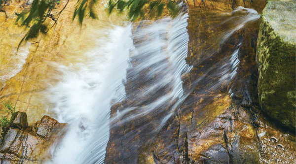 “踏遍黃峨岱與廬,唯有天堂水最佳”。天堂寨的水,經相關部門檢測,為地表一級礦泉水,是世界上難覓的純凈水。由于這里屬于亞熱帶季風氣候,加上降水量多而蒸發量少,所以天堂寨水源特別充沛。山頂有被譽為“瑤池”的天塘;山腰有傾瀉而下的百道飛瀑;山下則流泉縱橫,碧潭遍布。天堂之水潺潺流淌,奔流不息,滋養著“華東最后一片原始森林”。從安徽六安金寨縣天堂寨國家森林公園大門進入,拾級而上,只聞瀑鳴如雷,寒氣逼人,五道清靈圣潔的山水形成的巨大水簾,依次出現在我們面前,飛瀑爭奇斗艷,源遠流長,據說即使三伏天百日大旱,也從未斷流過。
