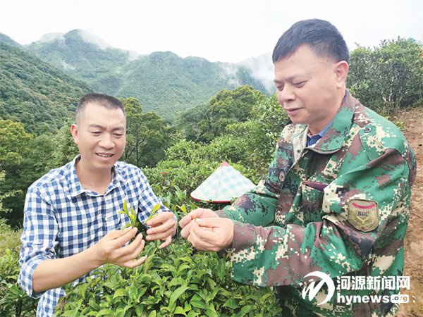 這幾天,作為省重點農業(yè)龍頭企業(yè)——河源市石坪頂茶業(yè)發(fā)展有限公司(下稱石坪茶業(yè))“掌舵人”,童廣清可謂“雙喜臨門”,一喜,由于脫貧貢獻突出,被廣東省扶貧辦評為全省“優(yōu)秀創(chuàng)業(yè)致富帶頭人”;二喜,公司石坪頂牌紅茶、綠茶系列產品榮選為“中國著名商標”。前日,記者見到童廣清時,他正帶著工人冒雨在東源澗頭鎮(zhèn)石坪頂茶園里鋤草。
