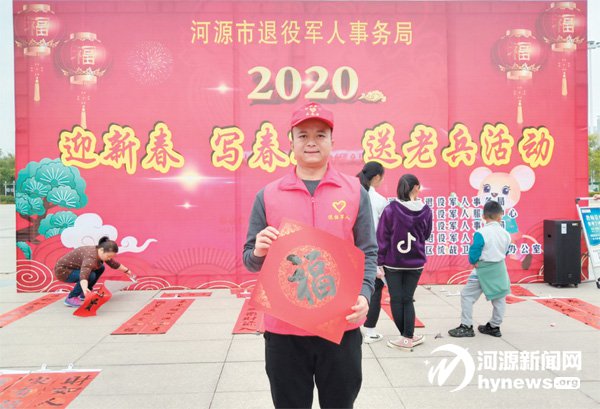 昨日,市退役軍人事務局在市區全民健身廣場南門舉辦“迎新春寫春聯送老兵”活動。