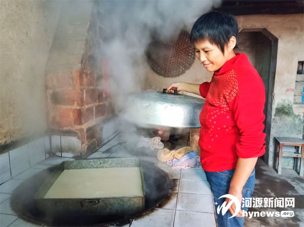 劉運(yùn)蘭在廚房蒸甜粄。