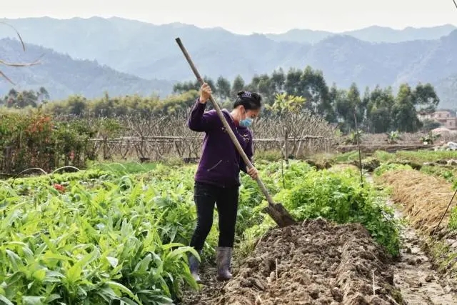 2月19日,清遠連南渦水鎮馬頭沖村,村民正在山地上翻土,準備栽種茶苗。