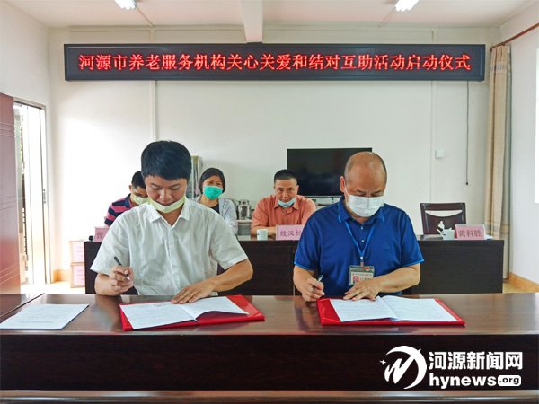 河源市家庭服務業協會與市福利院簽訂結對互助框架協議。