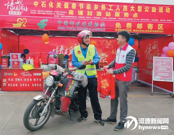 2020年“情暖驛站滿愛回家——中國石化關愛春節返鄉務工人員公益活動”隨著春運的開啟正式啟動,活動將為返鄉摩騎送出11000份免費加油禮包。本報記者 鄭婷影 攝
