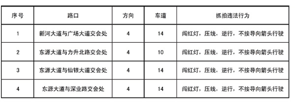 為規(guī)范我縣縣區(qū)交通信號(hào)燈路口通行秩序,減少因車(chē)輛在路口闖紅燈、越線、變道等交通違法行為引起的交通擁堵和交通事故,確保市區(qū)道路交通安全、暢通、有序、和諧,根據(jù)《道路交通安全法》《道路交通安全違法行為處理程序規(guī)定》等相關(guān)法規(guī),市公安局決定從2020年11月18日起,啟用新河大道與廣場(chǎng)大道路口及東源大道沿線等4個(gè)交通信號(hào)燈路口82個(gè)方向的交通技術(shù)監(jiān)控設(shè)備,依法對(duì)行經(jīng)此4個(gè)路口車(chē)輛的闖紅燈、越線等交通違法行為進(jìn)行拍攝和處罰。希望廣大市民和駕駛?cè)俗杂X(jué)遵守交通法規(guī),共同營(yíng)造市區(qū)良好的交通環(huán)境。
