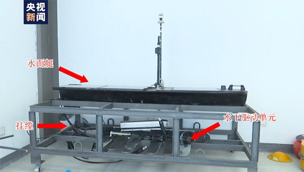 某研究機(jī)構(gòu)研究員 唐建生:從外形上來看上面是一個(gè)船一樣的東西,下面其實(shí)還有一部分,它由六個(gè)翼來組成,這兩部分之間是通過一個(gè)臍帶纜來連接的。非常明顯的特征就是它后面還有一個(gè)螺旋槳。從外形上來判斷,它實(shí)際上就是波浪滑翔機(jī)。這種波浪滑翔機(jī)在水下應(yīng)該說它的方向控制能力非常強(qiáng),這個(gè)應(yīng)該是比較先進(jìn)的一款波浪滑翔機(jī)。
