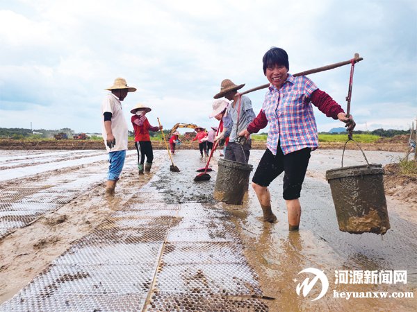“瞧瞧,這是多好的地啊!種上了稻子,今年要多打多少糧食啊!”前日,東源縣藍口鎮(zhèn)欖子圍村復墾點,一參與復墾的村民如是說。