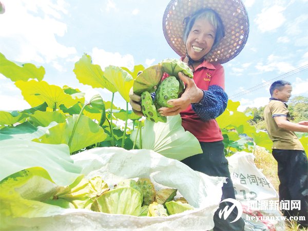 近日,記者在秀河畬族村看到,豐收的蓮蓬讓不少荷農(nóng)喜上眉梢,盛開的荷花還吸引了不少游客到村里觀賞,采蓮歸來的畬鄉(xiāng)村姑行走在荷塘間,成為一道亮麗風景線。行走在秀河畬族村,游客可近距離欣賞到“接天蓮葉無窮碧,映日荷花別樣紅”的盛景,也可在荷花叢中親手采摘新鮮蓮子,真正體驗了一回“江南可采蓮,蓮葉何田田,魚戲蓮葉間”的詩情。種植蓮蓬已成為當?shù)卮迕裨鍪盏闹匾馈S浾吡私獾剑愫赢屪宕迳徟罘N植已由去年的10戶30畝擴種到今年的30戶150畝。