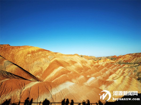 在我眼里,張掖的七彩丹霞有點(diǎn)像張掖的地名含義:張國(guó)臂腋,以通西域。它不像其他地方的丹霞地貌那樣“赤壁丹崖”、危絕陡峭,而是一種張開(kāi)手臂、和緩開(kāi)放的姿態(tài);它不是一種單調(diào)的顏色,而是歡天喜地地迎候四方賓客的模樣。它是在迎接張騫鑿空西域后絲綢之路上東來(lái)西往的商賈游客嗎?是在歡迎前來(lái)張掖參加隋煬帝舉辦的“世界博覽會(huì)”的27國(guó)歐亞賓客嗎?或者,它在為敦煌壁畫(huà)中的飛天呈獻(xiàn)彩帶?這又讓我忽然想起我的一位語(yǔ)文老師對(duì)中西方美學(xué)造型的一個(gè)評(píng)價(jià),老師說(shuō):“中國(guó)人比西方人聰明。西方人要一對(duì)翅膀才能飛天,而中國(guó)人卻只需要一根飄帶。”在我看來(lái),這也是中西方在繪畫(huà)上的一個(gè)重要區(qū)別:西方油畫(huà)極盡細(xì)節(jié),中國(guó)國(guó)畫(huà)卻從簡(jiǎn)寫(xiě)意。而七彩丹霞正是天地間呈現(xiàn)的巨幅畫(huà)卷。它或許是一位寂寞的仙人隨性抹上的涂鴉,又或許是一群神仙比賽繪就的丹青。它既有西方油畫(huà)的豐富細(xì)膩,又有中國(guó)畫(huà)的簡(jiǎn)潔超逸。這些仙人們用色大膽,調(diào)色盤(pán)里永遠(yuǎn)裝著你想象不到的顏料。當(dāng)然,紅和黃是他們的最愛(ài)。七彩丹霞那飄逸的線條又似流動(dòng)的音樂(lè),抑或是曼妙的舞姿。是它給了甘州音樂(lè)《波羅門(mén)佛曲》以某種啟示?還是在傳入宮廷后,又給了唐玄宗改編為《霓裳羽衣舞曲》以靈感?總之,它“只應(yīng)天上有,人間難得幾回聞”。難怪,美國(guó)《國(guó)家地理》雜志會(huì)將它列為“世界十大神奇地理奇觀”之一。