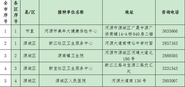 附件:河源市新冠病毒疫苗接種單位一覽表(第一批)
