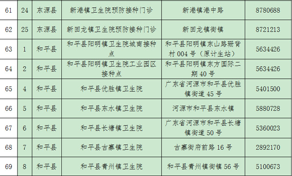 河源市新冠病毒疫苗接種單位一覽表(第一批)