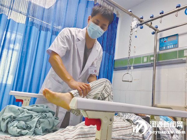 來自深圳第二人民醫院的郭偉壯正在查看患者恢復情況。