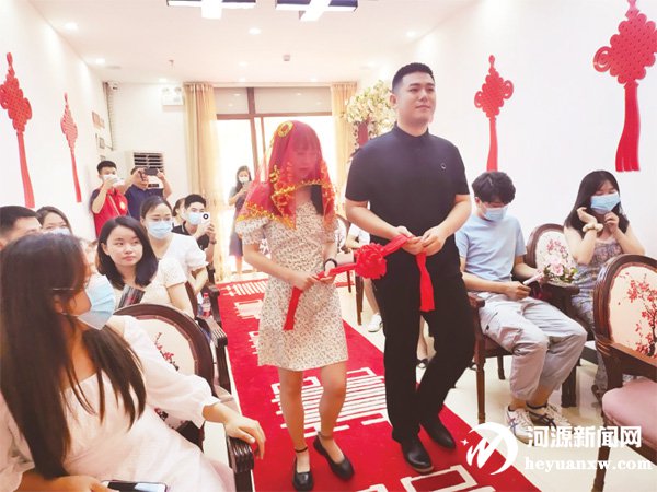 與東環學府社區的“相濡以沫家庭和睦(我們的愛情故事分享會)”不同的是,前日,在江東新區社會事務局婚姻登記處開展的“愛在七夕·和美家庭”主題活動,更注重一種傳統“七夕”婚禮文化的儀式感。活動現場吸引了10對新人參加。