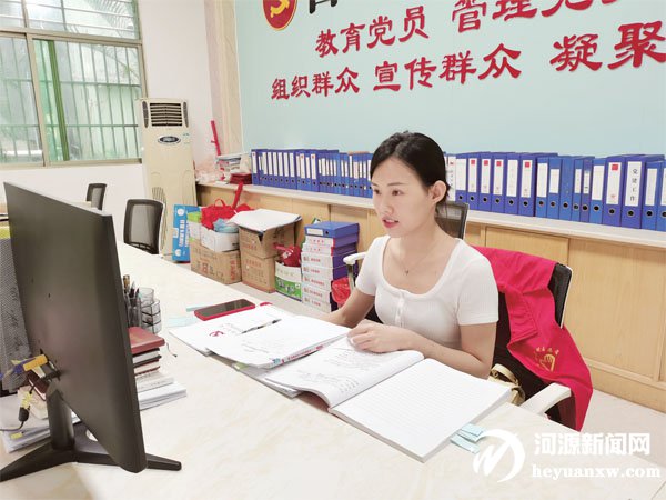 天空下著淅淅瀝瀝的小雨,在源城區源西街道白嶺頭村黨群服務中心,吳嘉欣正在值班,她認真地整理著手中的資料,并時刻關注著汛情信息,確保遇到突發情況時能及時處理。“當前正值汛期,所以我們采取24小時值班制度,現在剛好輪到我值班。”吳嘉欣說。