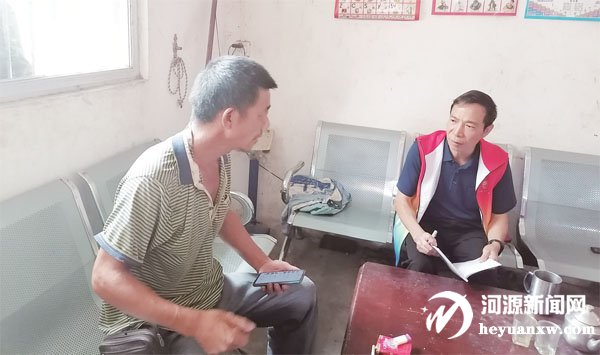 何鎮文(右)入戶了解群眾家庭情況。