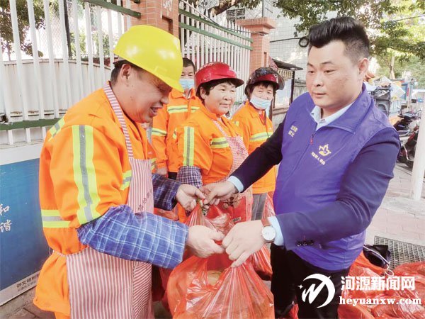 歐陽仕給環(huán)衛(wèi)工人送青菜。(資料圖)