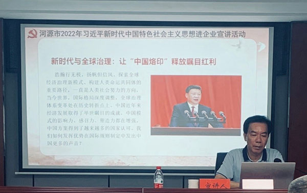 宣講會(huì)上,林惠鵬以“學(xué)用新思想 建功新時(shí)代”為主題,聚焦習(xí)近平新時(shí)代中國(guó)特色社會(huì)主義思想,緊緊圍繞全面建設(shè)社會(huì)主義現(xiàn)代化國(guó)家、實(shí)現(xiàn)新時(shí)代新征程各項(xiàng)目標(biāo)任務(wù)關(guān)鍵在黨等內(nèi)容,詮釋“中國(guó)共產(chǎn)黨為什么能,中國(guó)特色社會(huì)主義為什么好”,同時(shí)結(jié)合自身感悟,作了系統(tǒng)宣講和解讀。林惠鵬指導(dǎo)企業(yè)干部職工如何學(xué)好弄通習(xí)近平新時(shí)代中國(guó)特色社會(huì)主義思想,對(duì)干部職工更好把握習(xí)近平新時(shí)代中國(guó)特色社會(huì)主義思想的核心要義、精神實(shí)質(zhì)、豐富內(nèi)涵、實(shí)踐要求,推動(dòng)黨的創(chuàng)新理論走深走實(shí),具有很強(qiáng)的指導(dǎo)作用。