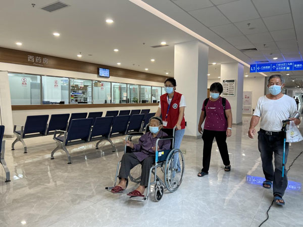 此外,志愿者們還全天不間斷開展巡視,幫助有需要的老年患者。如志愿者主動為一位帶著行動不便高齡母親的阿姨,完成一系列就醫流程,協助她在服務窗口現場掛號、繳費等,并貼心地幫她在手機上錄入粵核酸相關信息,指導出示粵核酸碼。“下次復診時,家屬可以通過醫院微信公眾號,綁定老人的就診卡預約掛號,治療結束后可直接在微信上完成繳費,公眾號上也可以查看檢查檢驗報告。同時醫院也保留有傳統掛號服務窗口,入口處也在‘無健康碼’通道配備有工作人員幫助沒有智能手機或無法提供健康碼的老年人進行人工登記,如果在就醫過程中遇到任何智能化問題,可直接向‘老人愛心崗’尋求幫助。”患者就診結束后,志愿者又這樣為家屬介紹。
