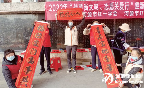 2022年青春情暖之迎新春義寫對聯志愿服務活動在源城區鱷湖公園志愿者驛站舉行。書法老師現場揮毫,為社區居民送上新春的文化賀禮。